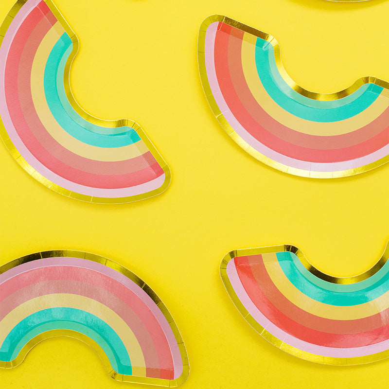 أطباق ورقية على شكل قوس قزح - 8 قطع