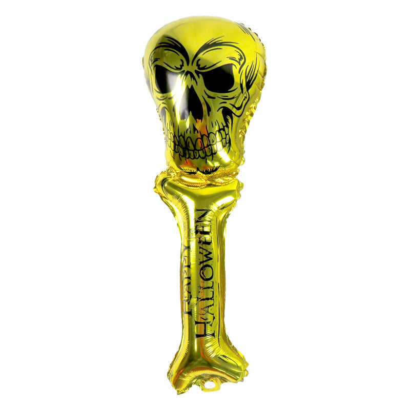 عصا بالون هالويين هيكل عظمي ذهبي (مملوءة بالهواء)