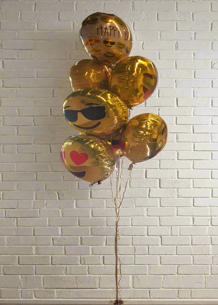 باقة بالونات عيد ميلاد من رقائق معدنية على شكل رموز تعبيرية