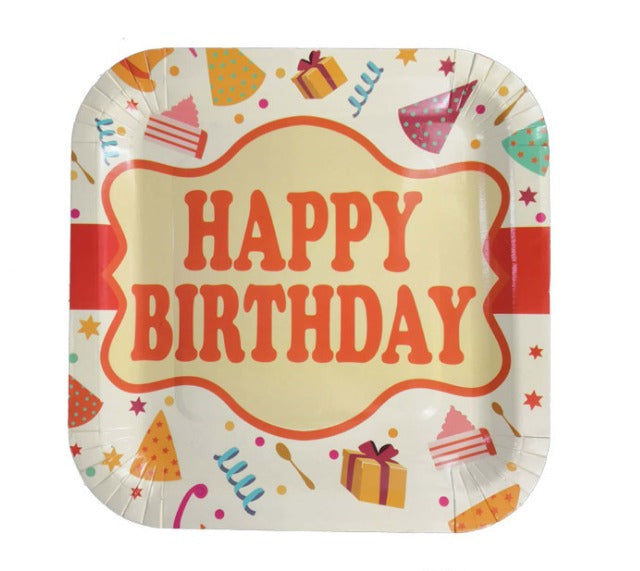 أطباق ورقية مربعة عليها عبارة "عيد ميلاد سعيد" - 8 قطع
